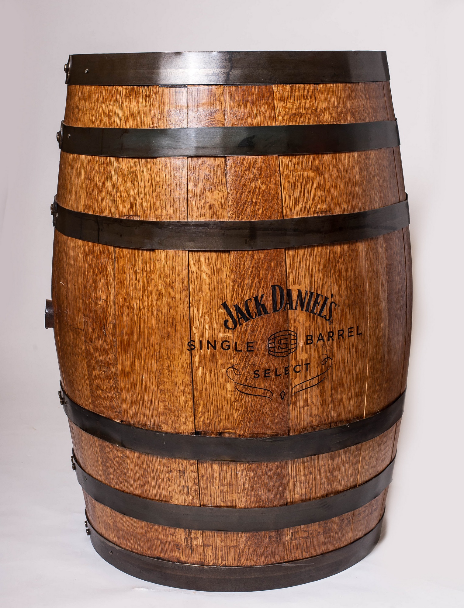 A beautifully finished genuine Jack Daniel whiskey barrel. 55-gallon size, emptied of its contents.